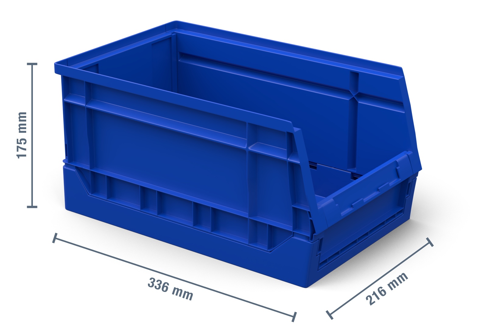 In ogni contenitore a bocca di lupo è possibile stoccare pesi fino a 20 kg. Con il contenitore a bocca di lupo pieghevole da è possibile stoccare in modo chiaro i componenti di piccoli dimensioni, assicurandone un facile prelievo. Il contenuto è immediatamente visibile dall’esterno, anche se i contenitori a bocca di lupo sono impilati uno sull’altro. Poiché sono pieghevoli, i contenitori a bocca di lupo possono essere conservati e trasportati in modo da risparmiare spazio. La piegatura e l’apertura richiedono pochi secondi. Questo contenitore a bocca di lupo è ideale per attrezzare scaffali a ripiani lunghi, scaffali inclinati, tavoli da imballaggio, scaffali a ripiani e portapallet di TOPREGAL.