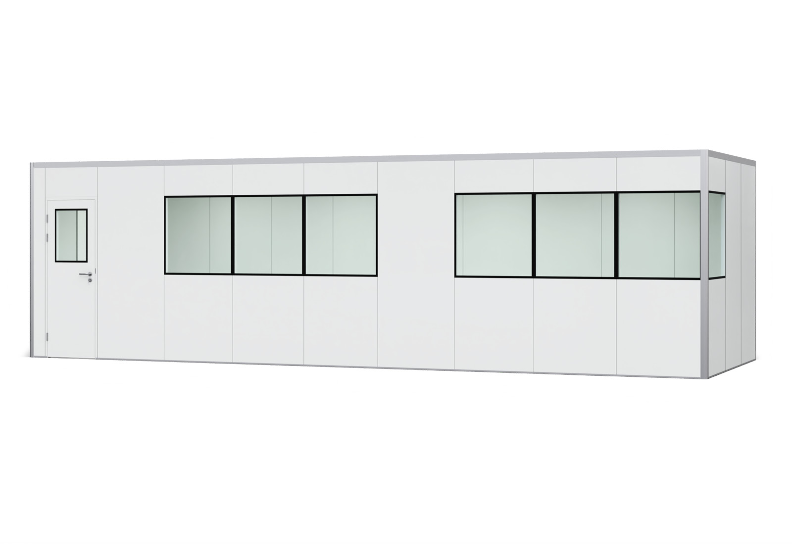Box uso ufficio PREFAB-27, 8 finestre, 1 porta (15 pannelli parete, 9 pannelli soffitto)