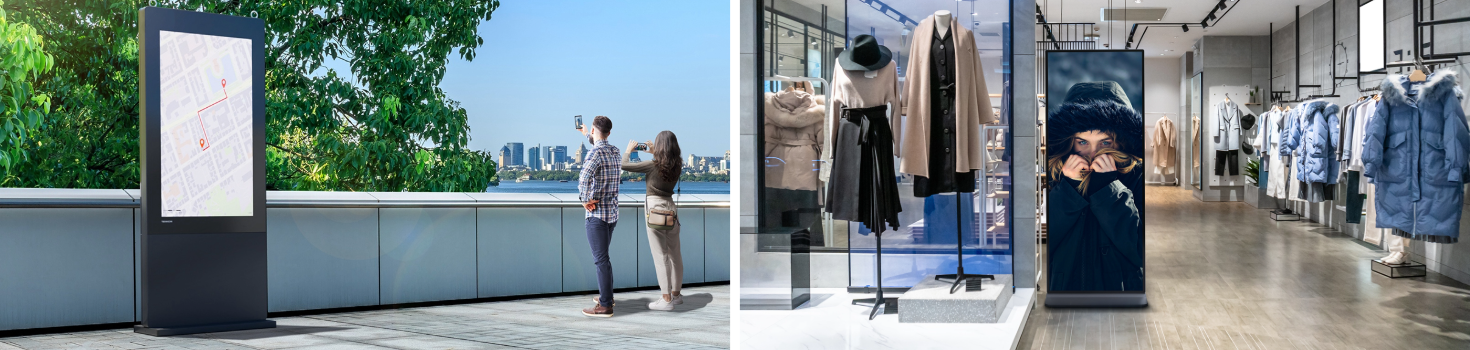 Le aziende hanno bisogno di soluzioni pubblicitarie flessibili per servire contemporaneamente molti punti di contatto e dimostrare la propria presenza. "I supporti pubblicitari mobili come il DKST-LED43 consentono di provare diverse posizioni per rivolgersi alle persone", spiega Effner. "Questo significa che lo spettatore incontra sempre i messaggi in un modo nuovo, creando varietà ed eccitazione". Le rotelle e il peso ridotto garantiscono una facile movimentazione. Questo facilita anche il trasporto da e verso gli eventi o le fiere. La combinazione di immagini in movimento, suono e touchscreen apre nuove forme di applicazione interattiva: Sul display, i clienti e gli ospiti possono interagire con elementi quali brochure o menu digitali, richiamare siti web o guardare video, aumentando così il coinvolgimento con i contenuti e la profondità delle informazioni.