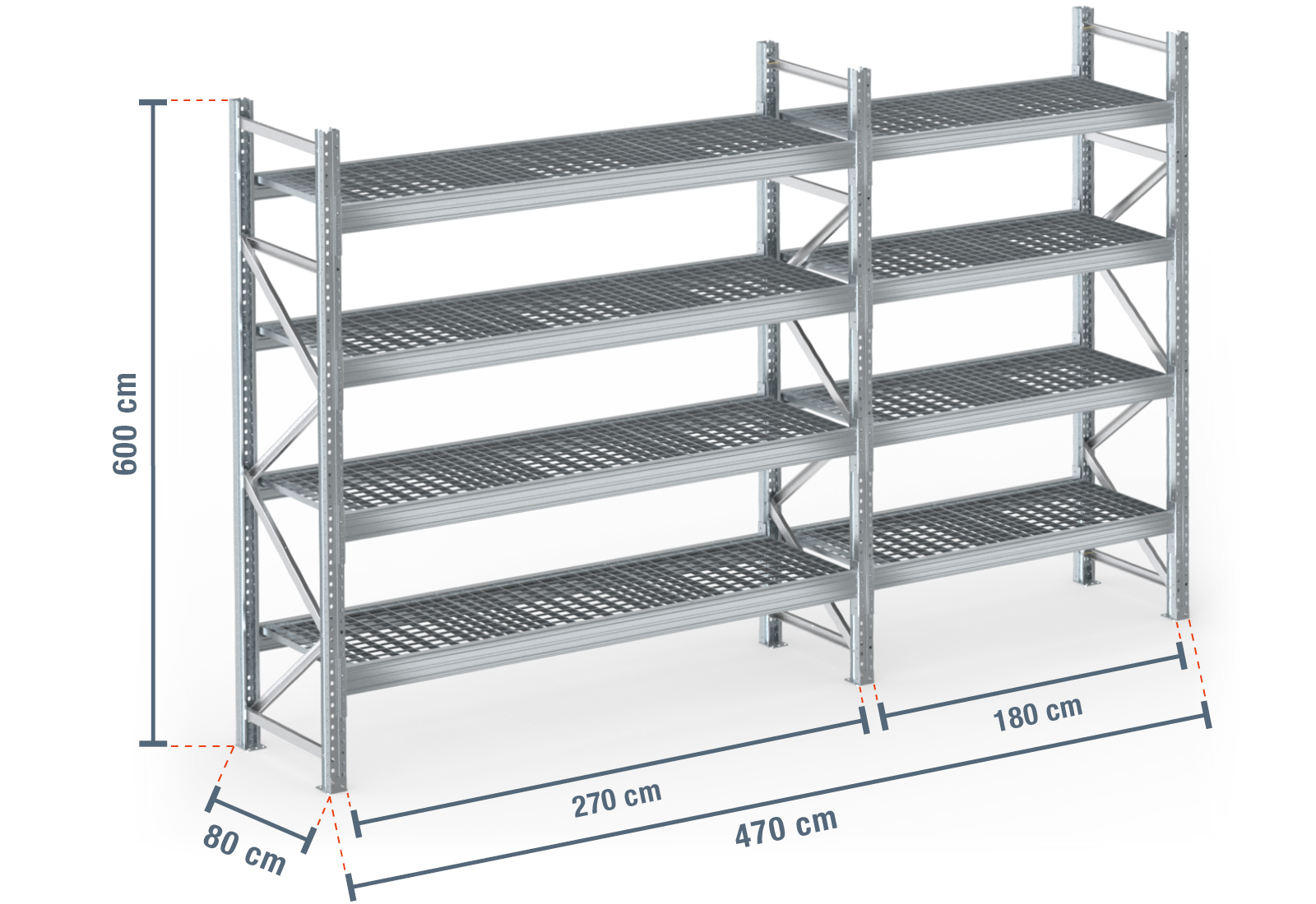 4,7 m scaffale portapallet PR9000F zincato a caldo / 80 cm profondità / 6 m altezza / 4 livelli / supporto grigliato