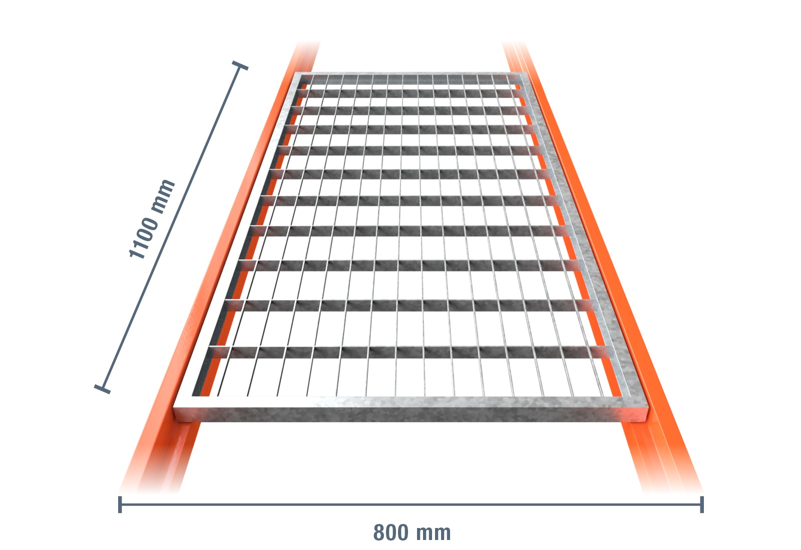 • 1 x 1.100 mm grigliato in acciaio per scaffale di stoccaggio LR2000 / 800 mm profondità / 25 mm altezza (composto da 1 moduli)