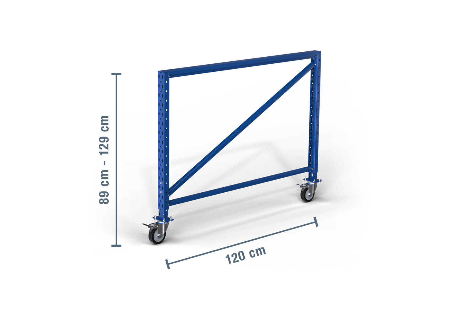 Questo sostegno per scaffale di stoccaggio è particolarmente pratico grazie alla regolazione in altezza flessibile di 890 - 1.290 mm. Il tavolo da imballaggio può essere sistemato e fissato semplicemente nella posizione desiderata tramite le ruote orientabili con freni di stazionamento. In questo modo si può ottenere una postazione mobile di imballaggio o di lavoro con una profondità di 1.200 mm. Con questo sostegno mobile è possibile ampliare lo scaffale di stoccaggio esistente o assemblarne uno nuovo in base alle proprie esigenze specifiche.