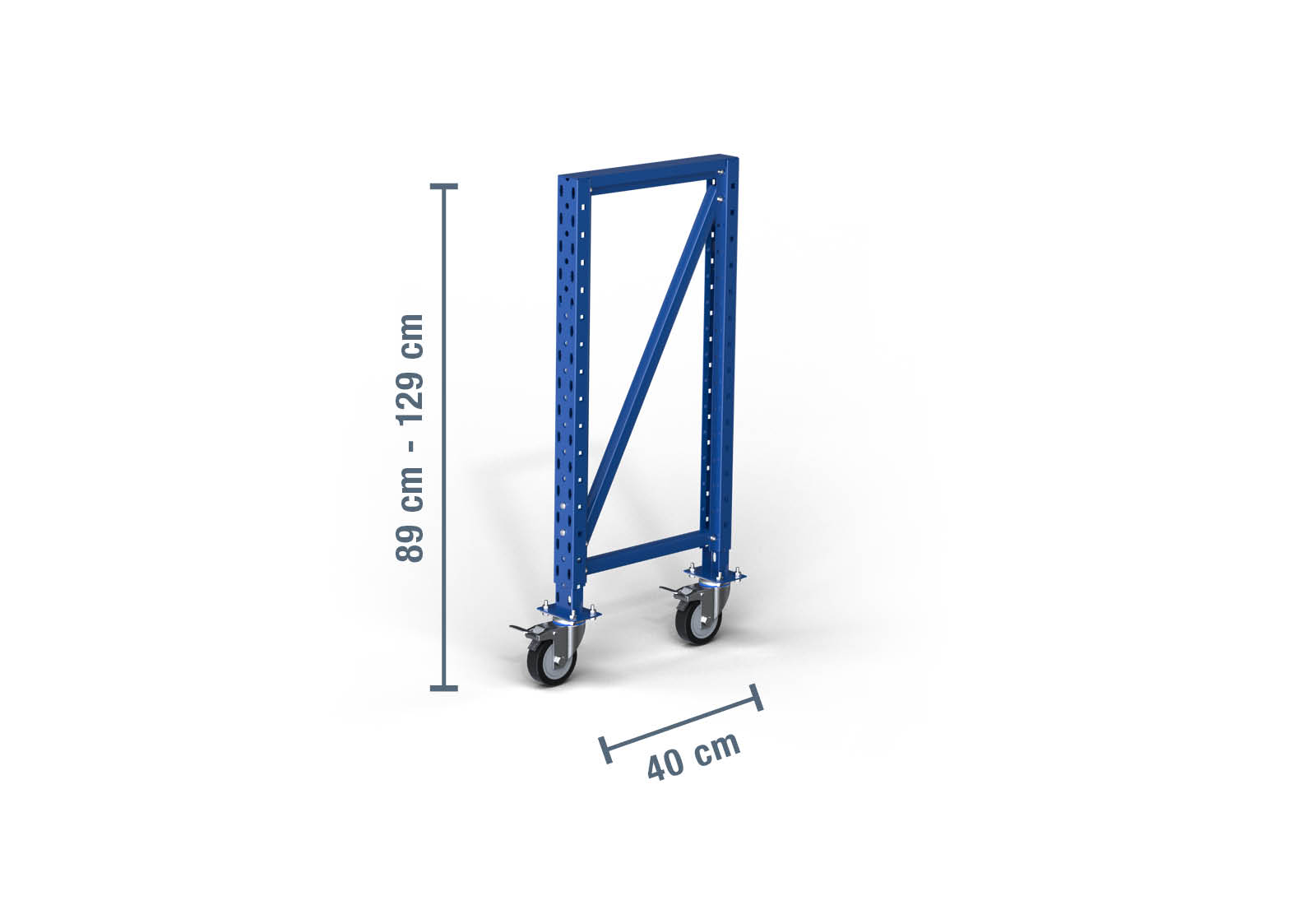 Questo sostegno per scaffale di stoccaggio è particolarmente pratico grazie alla regolazione in altezza flessibile di 890 - 1.290 mm. Il tavolo da imballaggio può essere sistemato e fissato semplicemente nella posizione desiderata tramite le ruote orientabili con freni di stazionamento. In questo modo si può ottenere una postazione mobile di imballaggio o di lavoro con una profondità di 400 mm. Con questo sostegno mobile è possibile ampliare lo scaffale di stoccaggio esistente o assemblarne uno nuovo in base alle proprie esigenze specifiche.
